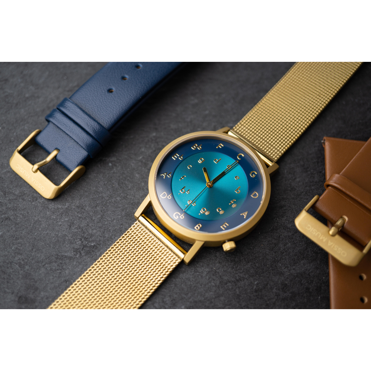 Step into your musical journey with the Symphony Azure edition of Ossia Watch, complemented by an Azure Leather Strap. Paired with the Ossia Blueprint, this innovative toolset unveils a world of music theory. The azure face of the watch, as clear as a summer sky, mirrors the beauty of music and the unlimited possibilities it offers. The matching Azure strap seamlessly ties the design together, symbolizing the harmony in music.