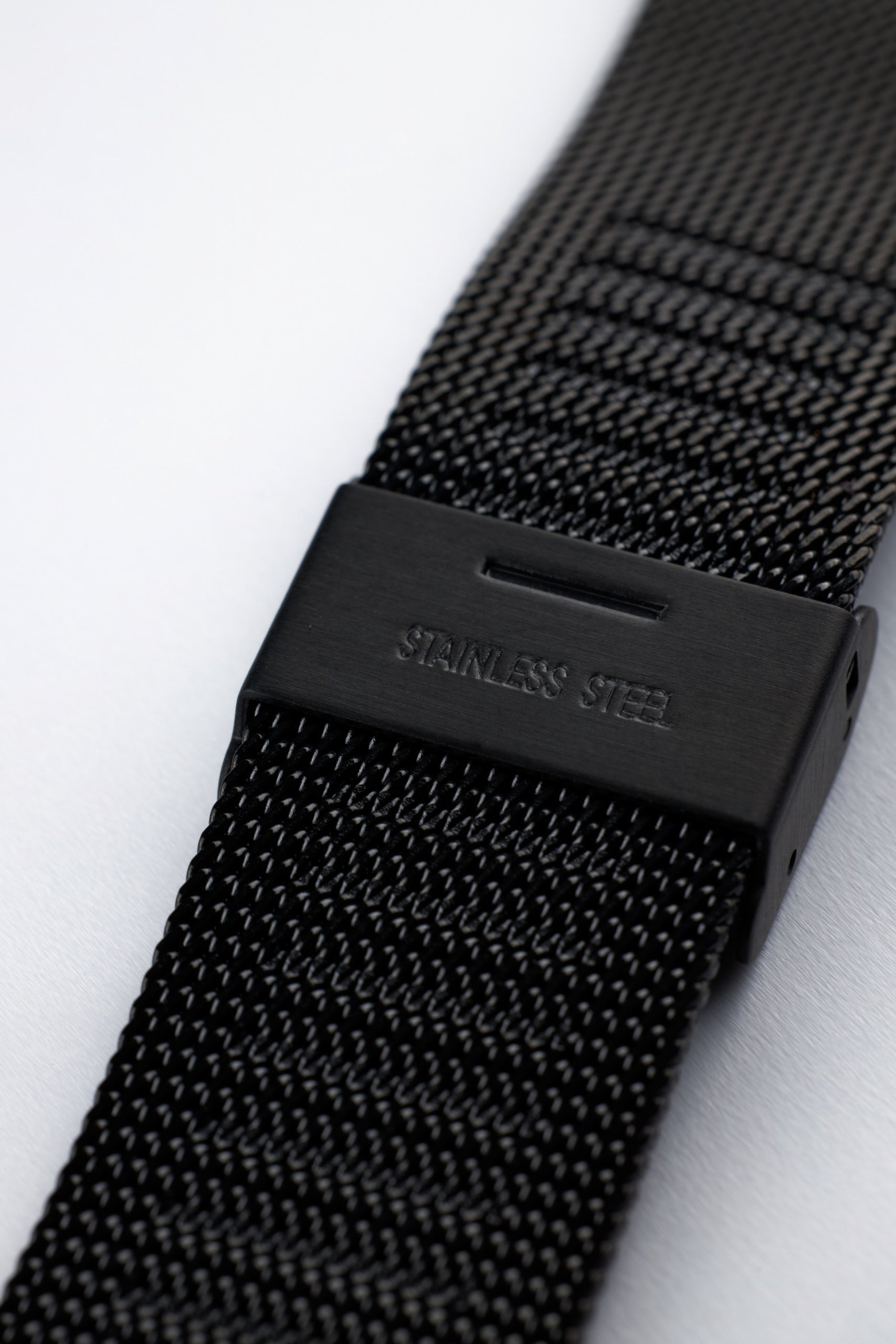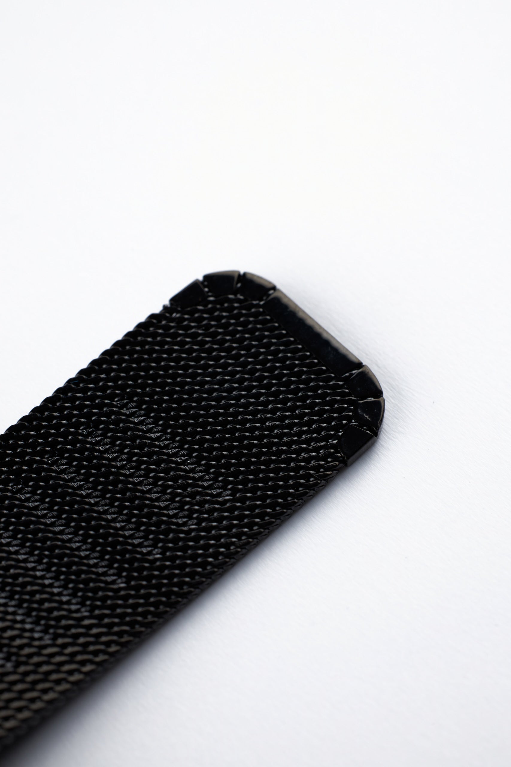 The Noir Mesh Strap exudes an understated sophistication that is both fashionable and versatile. Made from finely woven stainless steel, this strap is durable, lightweight, and offers a modern take on classic watch style. The black stainless steel presents an air of elegance, making it the perfect accessory for any situation.